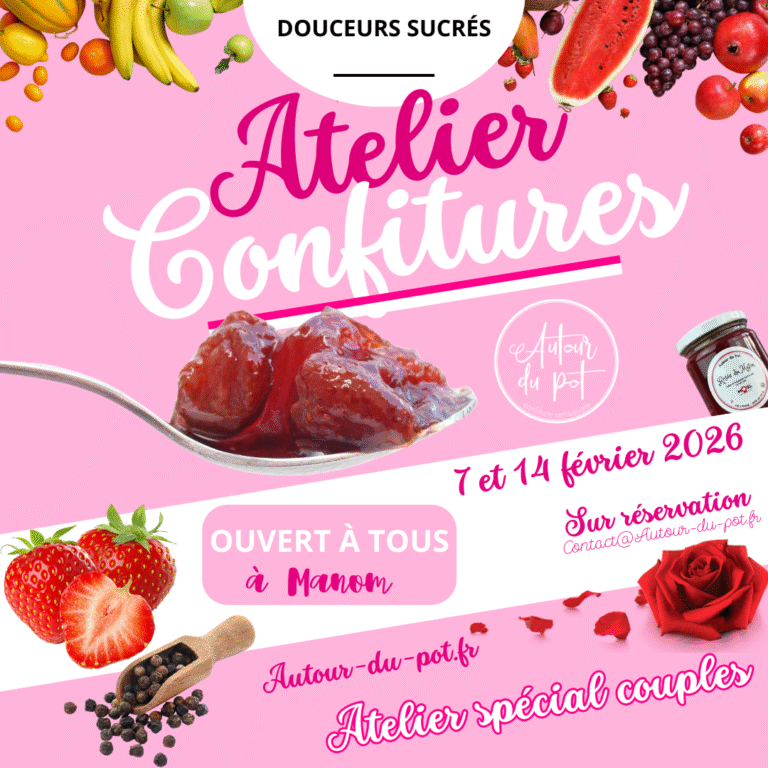 Les prochains atelier de création de confitures seront en 2026. Et oui pour 2025 tous les ateliers sont déjà complets.